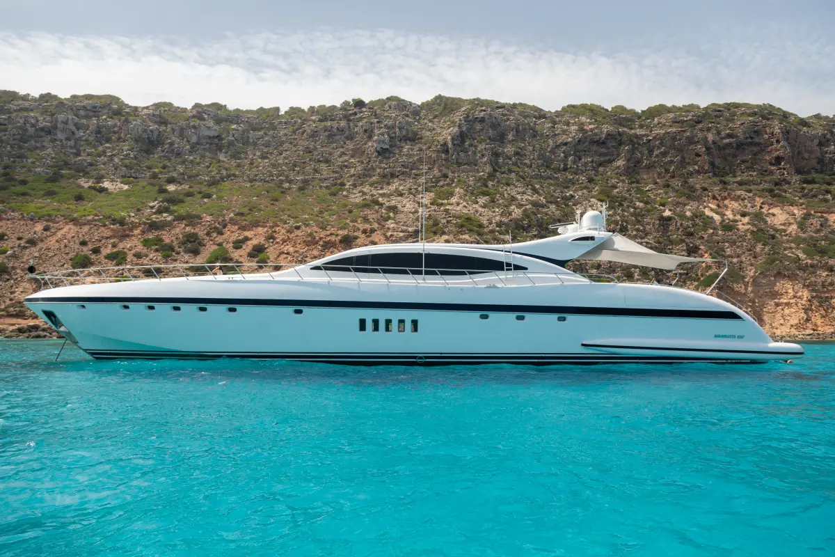 The Mangusta 108 is a large sports yacht, measuring 33 meters in length and delivering impressive performance. Known for its aerodynamic style and power, this yacht is perfect for those seeking both speed and luxury in equal measure.