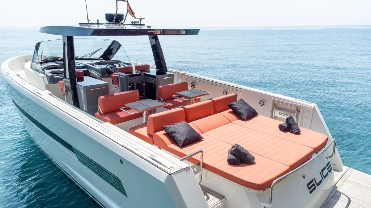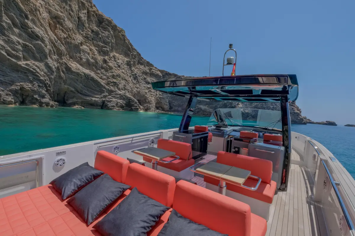 The Fjord 48 is one of the most sophisticated and spacious open yachts in its category, measuring 15 meters in length with a capacity for 11 passengers plus the captain. Its design stands out for its modern lines and open-plan layout, prioritizing outdoor living.