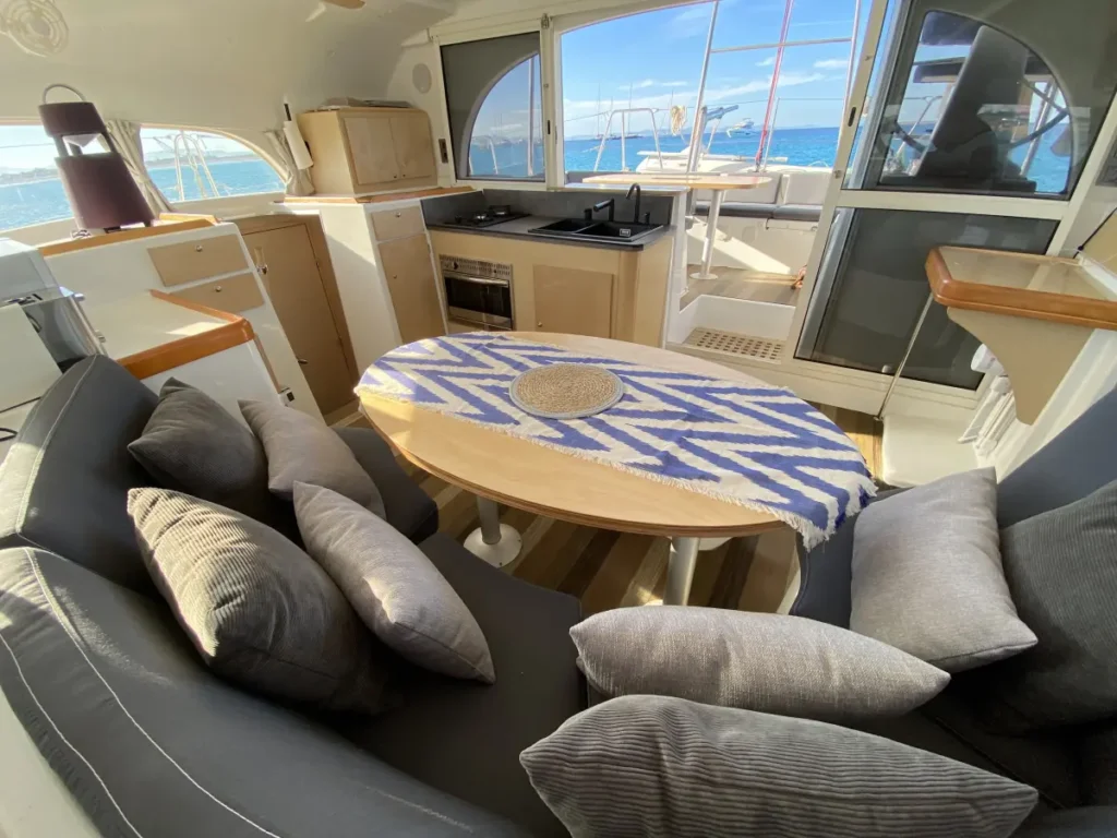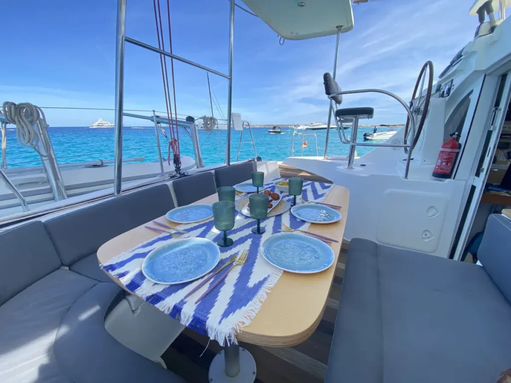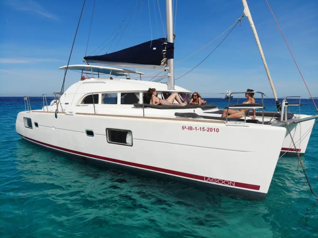 Die Lagoon 380 ist ein geräumiger und komfortabler 12-Meter-Katamaran mit einer Breite von 6,5 Metern, ideal für sicheres und stabiles Segeln. Mit zwei Yanmar-Motoren von je 27 PS bietet sie eine ruhige und effiziente Fahrt. Mit Platz für 11 Gäste am Tag und bis zu 8 Übernachtungsgäste ist sie perfekt für Gruppen, die die kristallklaren Gewässer von Ibiza und Formentera mit maximalem Komfort erkunden möchten.