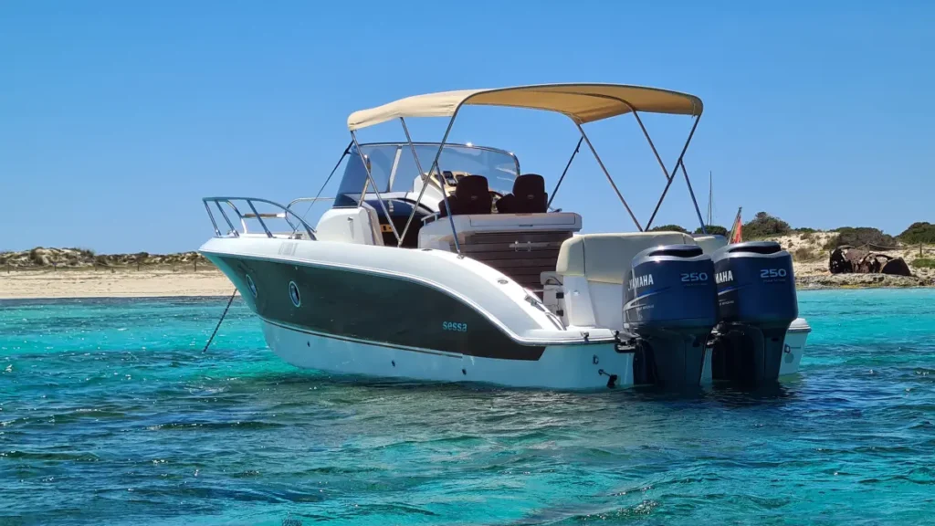 La motorización de este modelo garantiza una navegación ágil y placentera, ideal para recorrer las aguas cristalinas de Formentera.